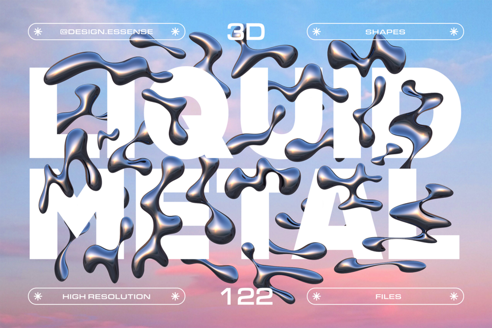 This set contains 122 high-quality unique 3D Liquid Metal Shapes. Excellent for posters, covers, web design, social media, packaging, or any other creative projects that require bold and trendy designs.